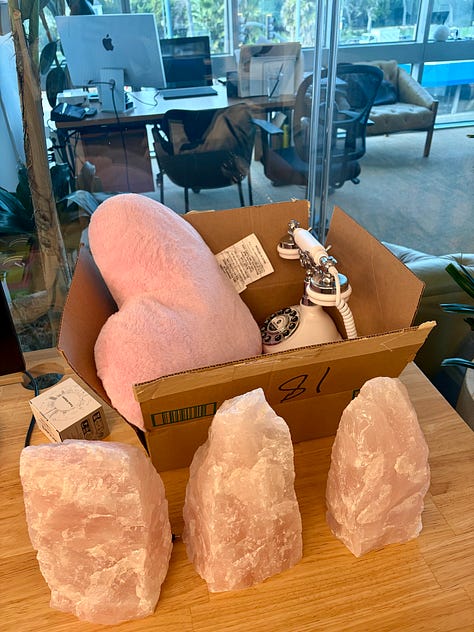 A walk through our office reveals a lot of things that make ALO ALO. There’s matcha and cold brew on tap, brewed coffee, and an espresso machine (we run on caffeine), cozy blankets, comfy couches, sweatsuit-clad employees, a gym, a yoga studio, small dogs, large dogs, in-between dogs… and crystals. Lots, and lots, of crystals.
